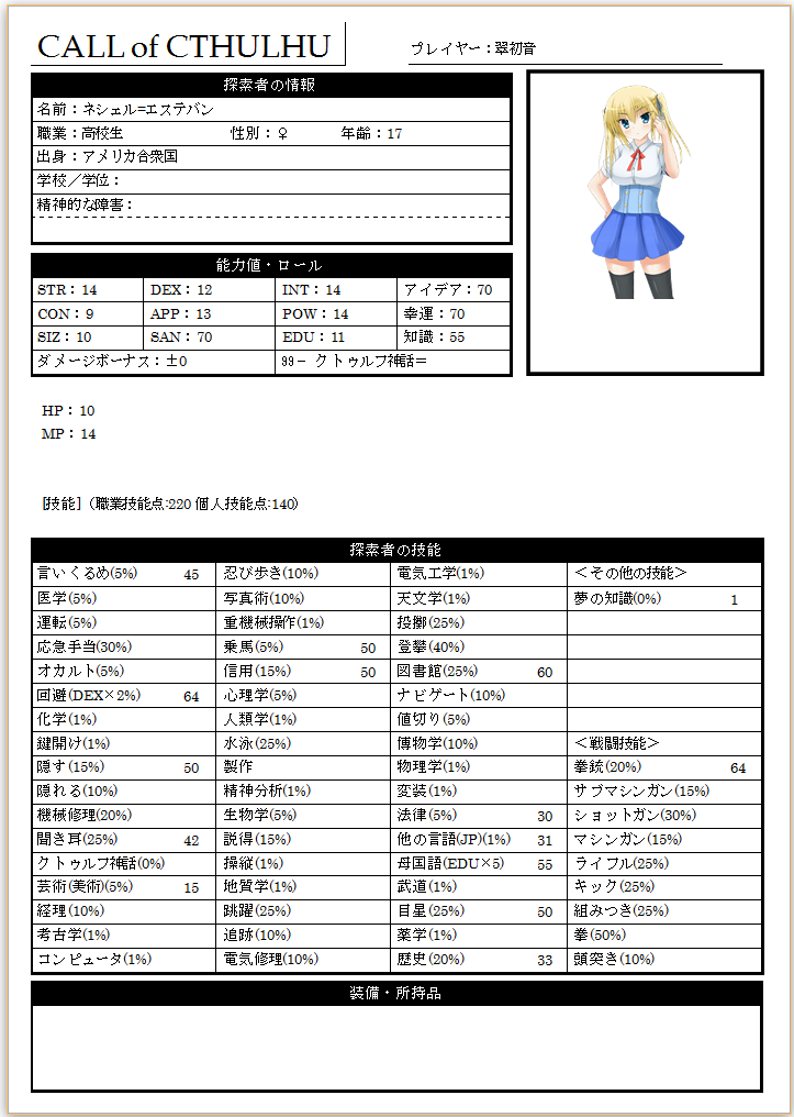 …まぁ相手さんが「オンセする練習としてちょっと付き合ってよ。超初心者用の用意するからさ」とのことだったので、クトゥルフTRPGのうちのクトゥルフ成分はかなり低いものでした。